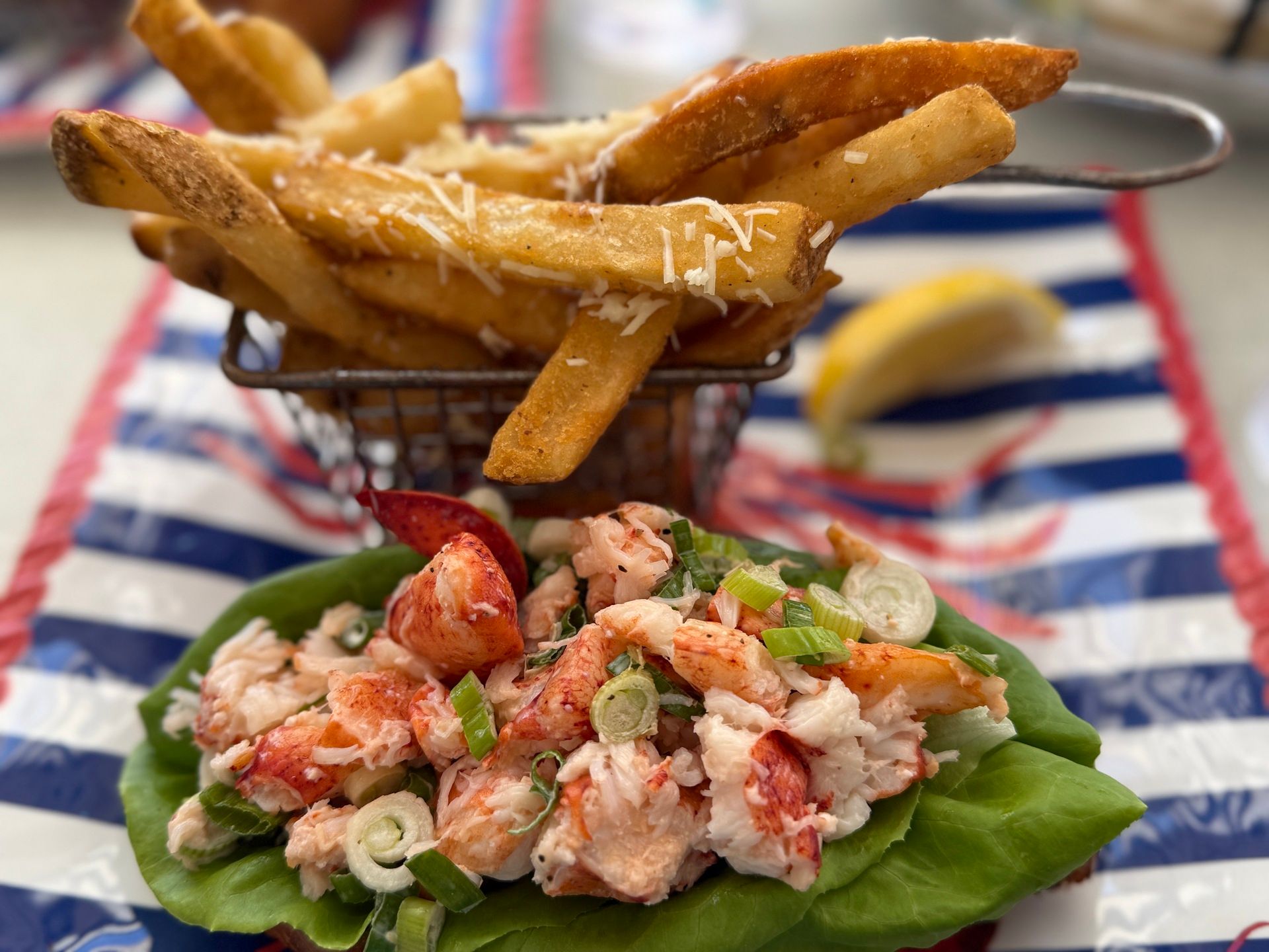 A fabulous lobster roll at the landmark Bennyâs on the Beach at Lake Worth Beach Pier in The Palm Beaches, Florida.
